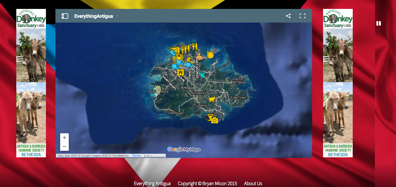 Using a standad template with Jquery to man the controls, we can play/pause the flag and have modal windows that overlay with furthther information on the site. Take note that we circumvent adblock technology through custom named url sources. Designed for both visitors to the island as well as locals this guide will help you navigate the available nightlife, moving, stores, and rental places of Antigua.